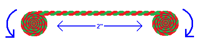 Step 4. Now you should be able to hold this end between your thumb and forefinger and begin winding the braid around in a circular fashion. Do the same with the other end. Stop when there is about two inches of wire left between the two pinwheels.