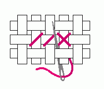 8. Crossing slant-wise to the upper left, push you needle to the back to complete your first cross stitch. |