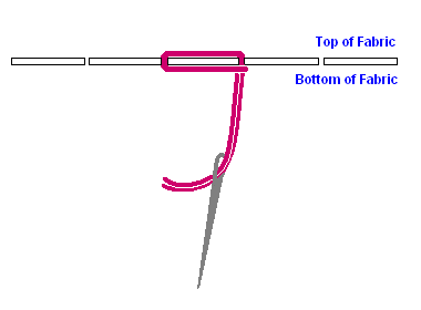 Turn your fabric over and thread the needle horizontally underneath the loop and the vertical stitch.
