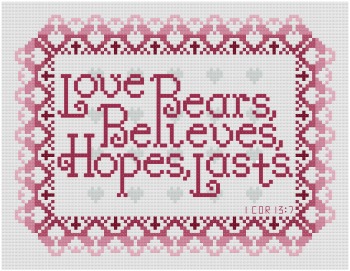 This Love Lasts Cross Stitch Design takes its inspiration from I Corinthians.