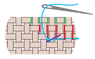 Go under the wire and the same cross stitch, then through the loop.