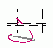 4. Crossing diagonally to the opposite corner, insert the needle and pull the floss completely through to the back. |